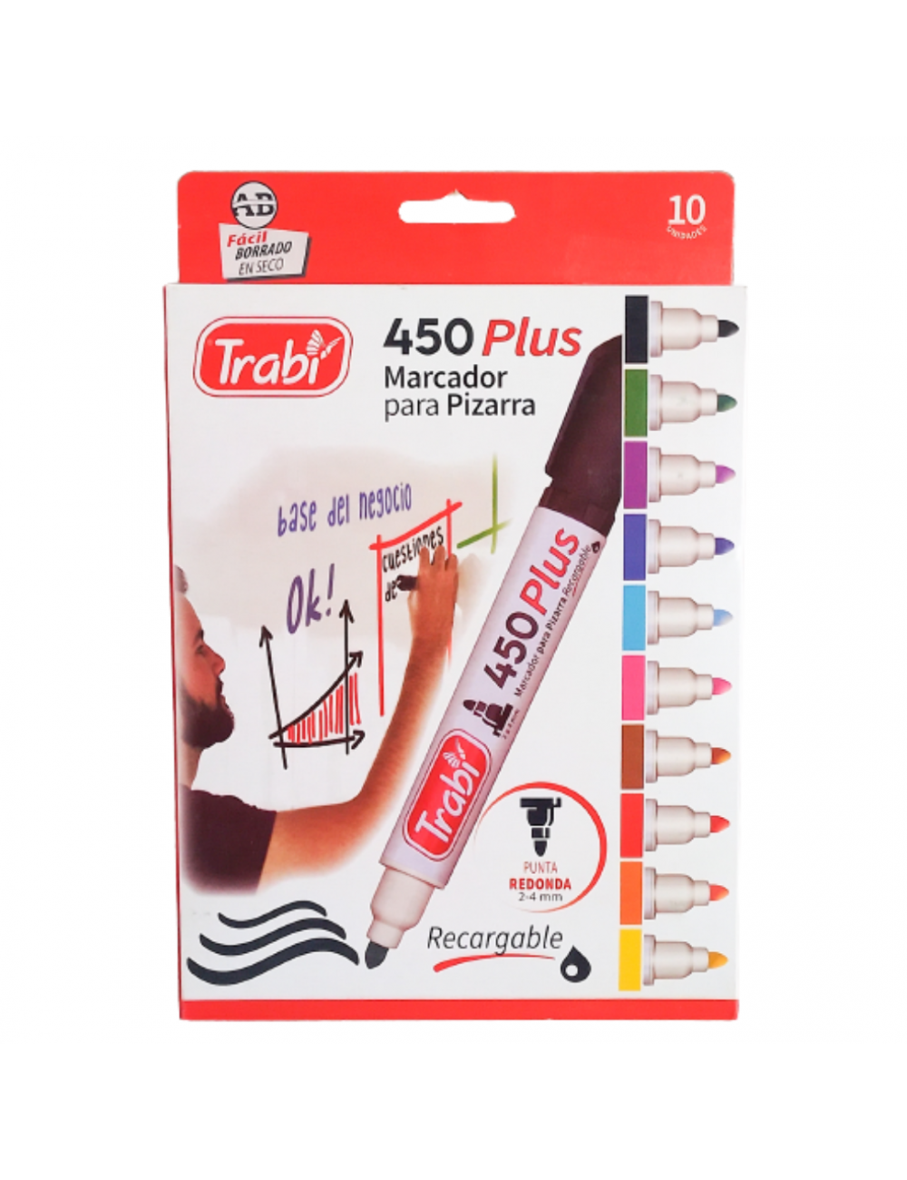 MARCADOR PARA PIZARRA X 10 TRABI 450 PLUS